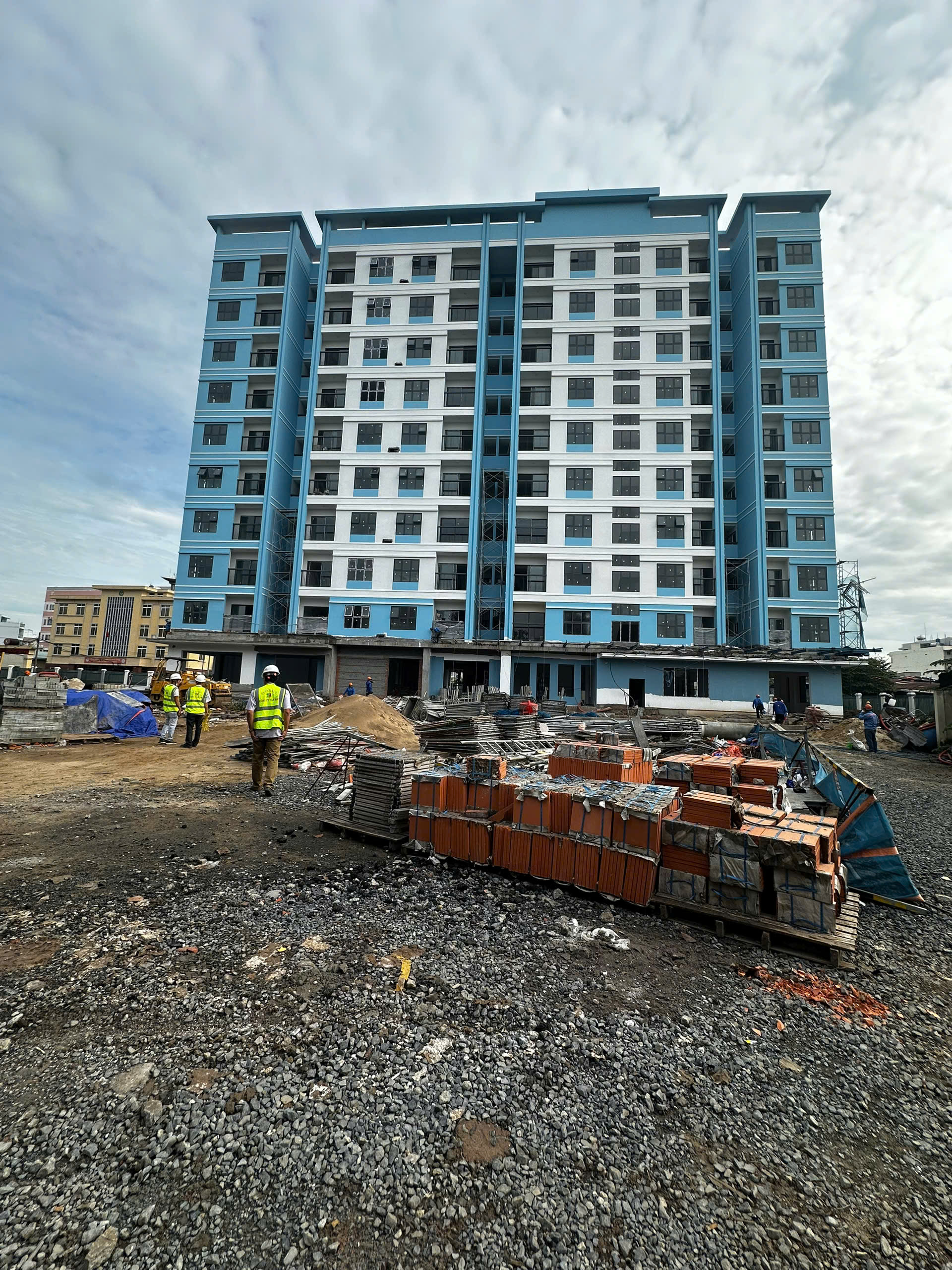 • Chung cư cao tầng với mặt dựng kính lớn.