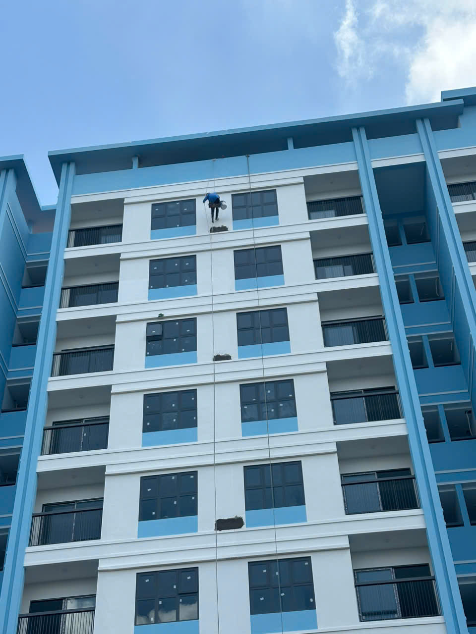 👉 Nhân viên HLC được trang bị bảo hộ, bảo hiểm lao động, sử dụng ghế đu dây đạt chuẩn, cam kết an toàn tuyệt đối.