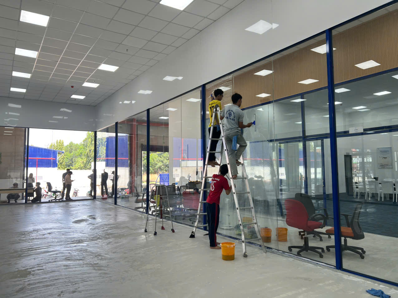 Tối ưu ánh sáng tự nhiên: Kính sạch sẽ cho phép ánh sáng xuyên qua dễ dàng. Tạo môi trường làm việc thoáng đãng, tiết kiệm điện năng chiếu sáng.
