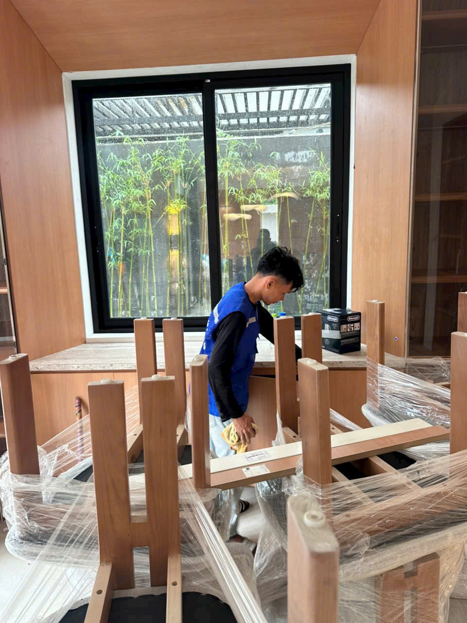 Dọn dẹp sơ bộ: Thu gom rác, vật liệu thừa, bụi bẩn lớn.