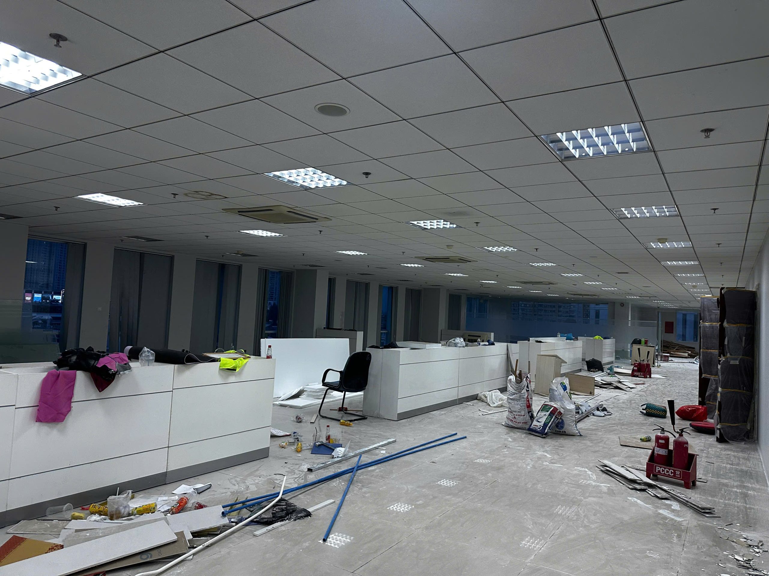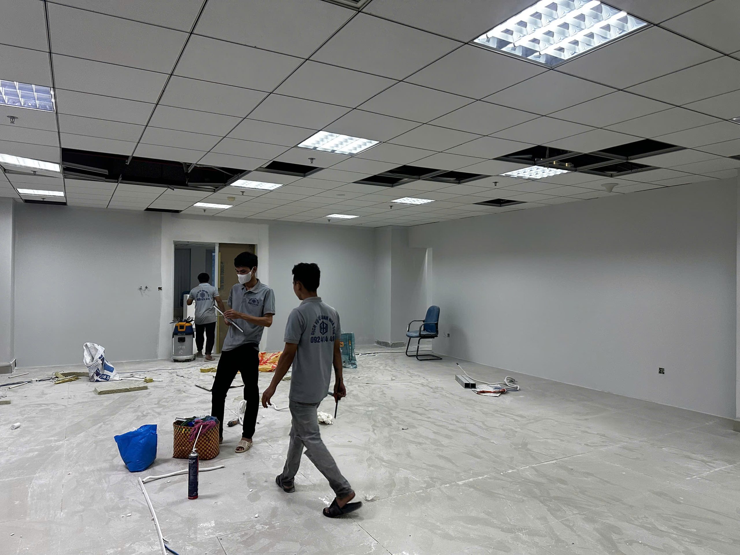 Vệ sinh khu vực làm việc, trần, máng đèn, quạt hút